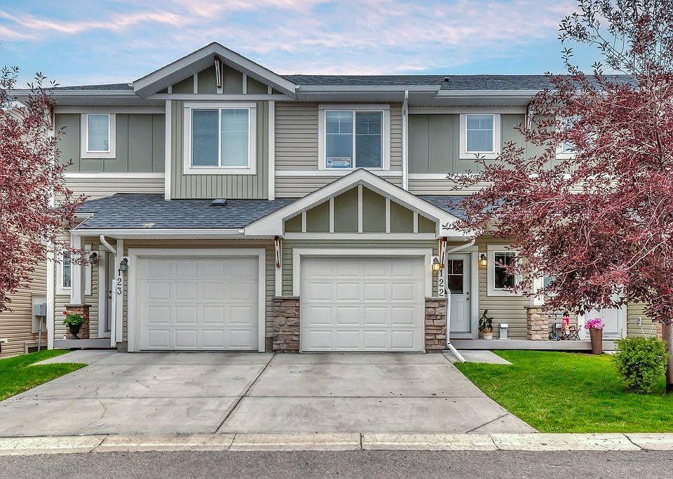 This is the one! This immaculate one owner townhome is one of only a handful of units in popular Chestermere Station with a fenced yard and full basement. You can’t beat this location with so many of Chestermere’s amenities just steps from your front door. Walk to shopping, restaurants, bars, gyms, the library and of course the lake, beach and the many picturesque parks and pathways that Westmere has to offer including an off leash dog park. The cute little covered front porch provides a touch of charm. Step into the spacious tiled front entryway with closet and a 2 pc powder room which is nicely tucked away from the main living space. Up just a couple of steps is your spacious and sunny open concept living space. The modern kitchen is well equipped with wood grain European style cabinetry, stainless steel appliances, subway tile backsplash and granite counters. Between the kitchen & dining area is a counter height peninsula with extra seating where family & guests will love to gather. You can conveniently access your back patio from the bright and cheery dining area allowing for easy BBQing year round. Other thoughtful upgrades you’ll appreciate include durable and easy care laminate flooring plus 9’ ceilings with knock down finish. Upstairs you’ll find 3 nice sized bedrooms including the primary bedroom complete with a 3 pc ensuite and huge walk in closet that even has a window. The other 2 bedrooms share the main bath with a tub which is a must have for any little ones. Upstairs laundry is another convenience you are going to love. This unit comes with a rare full basement that is ready for you to develop to suit your needs. A big window provides lots of light and means you can add a 4th bedroom if it suits your needs. The spacious yard is fenced making it perfect for kids or pets and it backs onto a grove of mature trees making this one of the most desirable locations in the community. Your fur babies are welcome in this pet friendly with board approval complex, but there’s no need to bring your shovel since snow removal and ground maintenance is included. You are going to love living here.