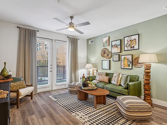 - Exterior features: Bicycle storage, Built-In Shelving*, Concierge, Courtyard, Custom Cabinetry & Designer Tile Backsplash, Granite Countertops, No Breed or Weight Restrictions, Online Rent Payment, Pet Park, Soaking Tub or Glass-Enclosed Shower*, Stainless Steel Appliances, State-of-the-Art Wellness Center, TV Lounge, Wood-Style Flooring