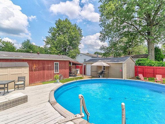 Welcome to this inviting 3 bedroom, 1.5 bathroom ranch-style home, complete with a backyard entertainment area and an above-ground pool. The sizeable living room, featuring a large window, flows seamlessly into the formal dining room, creating an open and airy feel. Off the kitchen, you'll find a convenient walk-in pantry and laundry room. The spacious secondary living area includes a charming wood-burning fireplace, perfect for cozy evenings. Luxury vinyl plank flooring extends throughout the home. The primary bedroom offers a walk-in closet and an en suite half bath for added convenience while the additional two bedrooms and full bath are just down the hall. The fenced-in backyard is perfect for entertaining, featuring a pool with decking, a firepit, and a covered back porch. Additionally, the detached garage provides attic storage, ensuring plenty of space for all your needs.