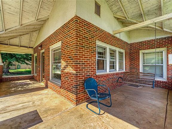 Large wrap around porch gives this home great curb appeal. The tall baseboards, glass doorknobs, French doors and original hardwood floors give this home a lot of charm. The kitchen features granite countertops. a large wrap around snack bar, tile floor, built in microwave and an electric stove. The large living room features a gas insert fireplace and lots of windows which provide lots of natural light. Laundry room has a table for folding, hanging clothes bar, and lots of cabinets. HVAC 2 yrs old. Roof 5 yrs old. The backyard has a chain link fence and a separate fenced area for a garden or animals. Large playhouse is currently being used as a tool shed. Detached 1 car garage has an attached 2 car carport plus additional uncovered parking.