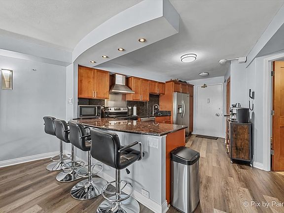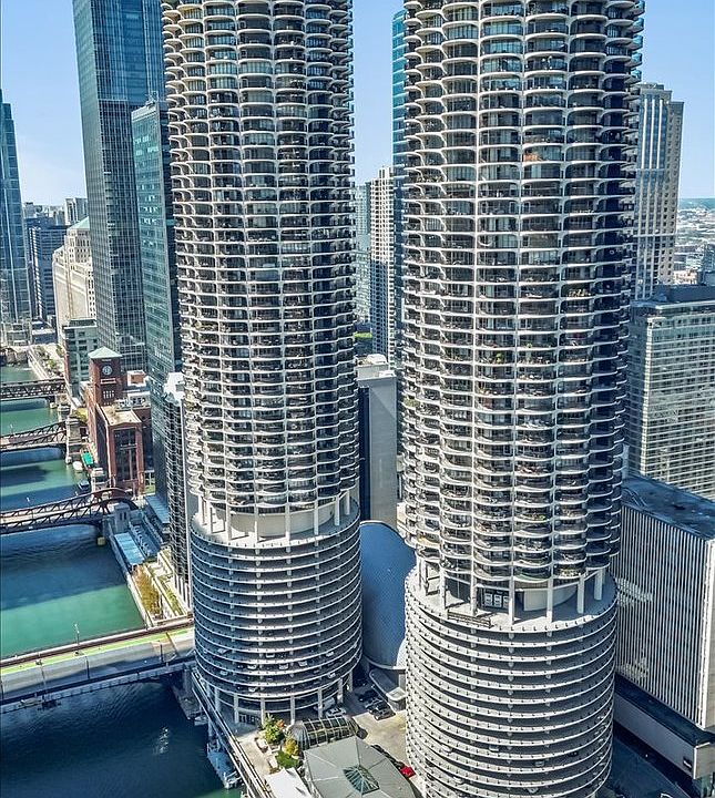 Live in Chicago's architectural landmark, the famous "corn cob" Marina Towers, offering one-of-a-kind city living right on the river. This updated condo features a modern kitchen with stainless steel appliances, maple cabinetry, and granite finishes. Floor-to-ceiling windows fill the living room with natural light and open to a private balcony with city views, while the bedroom offers its own second balcony. The bathroom is finished with a custom shower, granite tile, travertine flooring, and premium fixtures. Additional highlights include a rare in-unit washer/dryer and luxury vinyl plank flooring. HOA dues include cable TV and internet. Marina Towers provides unmatched convenience with package delivery, a fitness center, 24-hour security, on-site management, and dedicated storage. Residents also enjoy on-site dining, a grocery store, and dry cleaning services-all within the building. Perfectly located steps from CTA lines, bus routes, theaters, and world-class shopping on the Magnificent Mile. Investor-friendly!