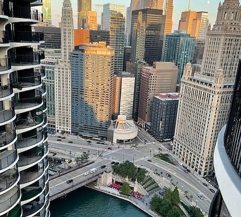 Beautiful views of the river and lake from this perfect Marina City, 46th floor, 1-bedroom condo. Laminate wood and ceramic floors throughout with updated kitchen and bath. French doors leading to the bedroom. Two walk-in closets and a large utility closet. Amenities include, tenant controlled heat and air-conditioning, two private balconies, floor to ceiling windows, in-building laundry, 24hr security, fitness room with river views, grocery market, event room, roof deck access, bike storage, package service, on-site maintenance, on-site valet parking, Minimum 2 yr lease. No Pets. Cable, water, trash, and Internet included in the rent. Tenants are responsible for electricity (heating and cooling).