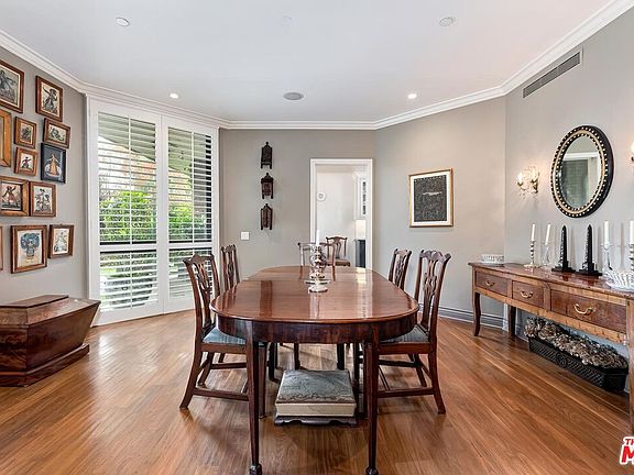 A distinguished and one-of-a-kind residence, this premier corner home is the largest two-bedroom plus den plan at the coveted IV Seasons Condominiums in Beverly Hills. Nestled along a serene, tree-lined street, the residence embodies formal elegance throughout, blending timeless traditional detailing with bespoke craftsmanship and an exceptional indoor-outdoor lifestyle. The grand living room sets the tone with its beautiful fireplace, while the adjacent den features custom library built-ins and rich wood flooring that flows seamlessly throughout the home. Floor-to-ceiling windows invite abundant natural light and frame tranquil treetop views, creating a warm and refined ambiance. This unique floor plan opens to an exceptionally large private courtyard terrace and landscaped potted gardens; an exclusive outdoor sanctuary ideal for entertaining, quiet mornings, or intimate gatherings. Designed for elevated living, the formal dining room provides a classic setting for hosting, while the thoughtfully appointed kitchen and bright breakfast room showcase verdant park vistas. The versatile den transitions effortlessly into a study, library, or media space, enriched by the home's custom millwork and artisanal finishes. The primary suite is a serene, traditional retreat featuring dual custom walk-in closets and a spa-like bathroom with a sunken soaking tub, separate glass-enclosed shower, and refined, timeless detailing. The secondary bedroom suite continues the bespoke aesthetic with its own tailored closet and elegantly appointed bath. An in-unit laundry room adds modern convenience to the home. Residents of IV Seasons enjoy premier full-service amenities, including 24/7 doormen, valet parking, a newly renovated entry foyer, upgraded corridors, a community courtyard pool and spa, a fitness center, and dedicated storage. Just moments from the finest shopping, dining, and cultural experiences in Beverly Hills and across the Westside, this exceptional residence offers a rare blend of privacy, sophistication, and enduring elegance.