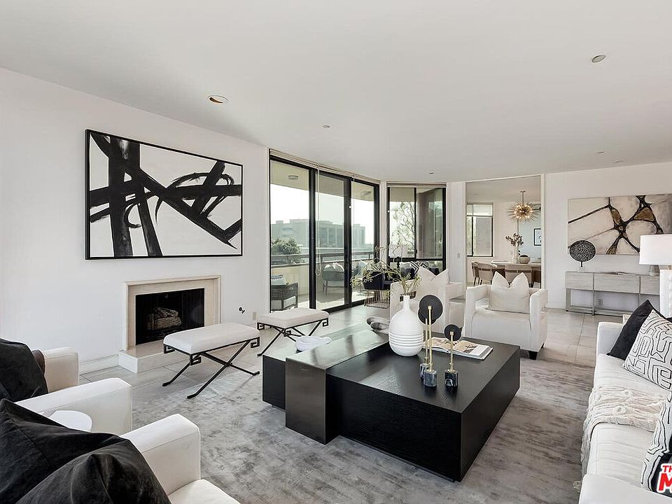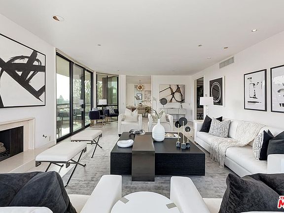 A modern, one-of-a-kind residence, this premier corner home is the largest Plan two-bedroom + den layout at the coveted IV Seasons Condominiums in Beverly Hills. Set on a quiet, tree-lined street, this residence is a refined contemporary aesthetic and exceptional attention to detail. Floor-to-ceiling windows wrap the residence in expansive 280-degree views from the Hollywood Hills to Beverly Hills and vibrant eastern sunrises, filling the interiors with natural light. Oversized white porcelain tile floors and streamlined built-in library cabinetry create a clean, modern backdrop, while the spacious terrace extends the living space outdoors with effortless flow. The formal dining area and sleek galley kitchen are designed for today's lifestyle, featuring modern cabinetry, and a bright breakfast room overlooking lush park treetops and the city skyline. The primary suite offers a calming, contemporary retreat with a custom walk-in closet, freestanding soaking tub, and an oversized glass-enclosed shower. The second bedroom suite mirrors the same elevated design with a custom closet and stylish ensuite bath. A flexible den serves perfectly as a home office or media lounge, and the redesigned laundry room adds everyday convenience with a modern edge. Residents enjoy full-service amenities, including 24/7 doormen, valet parking, a newly renovated pool and spa, fitness center, and additional storage. All just moments from the best shopping, dining, and experiences Beverly Hills and the Westside have to offer.