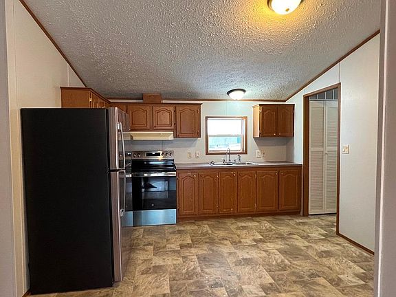 Welcome to this updated 4-bedroom, 2-bathroom manufactured home, offering both comfort and convenience in a fantastic location. Built in 2000, this home has been thoughtfully renovated with modern upgrades throughout, including new flooring in most of the home, a new furnace, central air conditioning, and brand-new appliances, including a washer and dryer. Upon entering in the living room, you'll find a spacious and versatile office featuring French doors, perfect for work-from-home needs or as a quiet retreat. The open-concept living area provides ample room for family gatherings, and the updated kitchen is sure to please with new appliances and plenty of cabinet space. The home's layout includes a convenient laundry area and generously-sized rooms, most offering comfort and privacy. Enjoy outdoor living with two brand-new decks: a 12x24 front deck perfect for entertaining, and a 12x16 ear deck ideal for relaxing or dining grilling. The home was moved to a new foundation, with a solid concrete slab, block, and insulated for added peace of mind. Located just minutes from the elementary school and directly across from a fenced playground, this home is in a great location. Don't miss out on this wonderful opportunity to own an affordable home with modern amenities and an unbeatable location! Schedule a showing today!