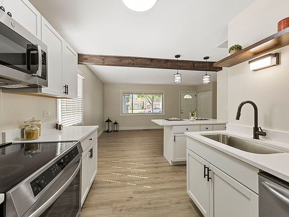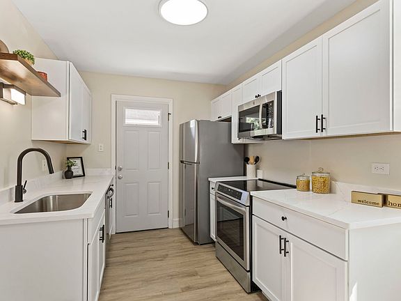 Charming, newly renovated and updated throughout 3 bedroom ranch completely move in ready. Immaculate, thoughtfully remodeled and tastefully designed - open concept kitchen and living room featuring stylish beam, large picture window and abundant natural light. Updated kitchen boasts 6ft island, accented with stylish fluted paneling and seating for four, quartz counters and stainless steel appliances. Updated bathroom; new hard surface lvt throughout, fresh neutral paint throughout - trim, ceiling & walls; new lighting throughout. Laundry room features new washer and dryer, new cabinetry for additional storage and ample counter space for laundry room needs. Furnace, AC and hot water heater replaced by recent previous owner within the last 3-8 years; newer roof installed by recent previous owner within the last 10-12 years. All windows are replacement (by recent previous owner) with tilt-in and open window security locking features. Exterior front provides warm welcome with deep front yard featuring mature trees, newly stone trimmed flower beds, fresh mulch and new greenery; windows accented with new shutters and freshly painted front door trimmed with stylish LED light, modern house numbers and mailbox. Sunny back yard with plenty of green space; long concrete driveway leads to spacious concrete patio; oversized two car garage. Minutes from I-80, 3.5 miles I55, 3 miles downtown Joliet. Conveniently located to abundant shopping, dining, entertainment, parks & recreation.