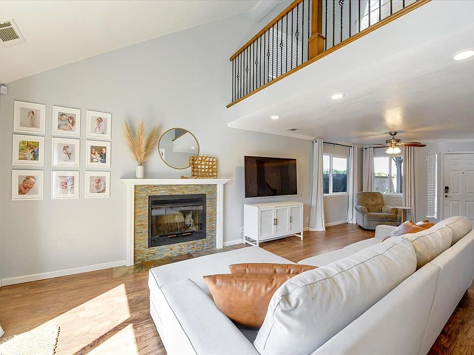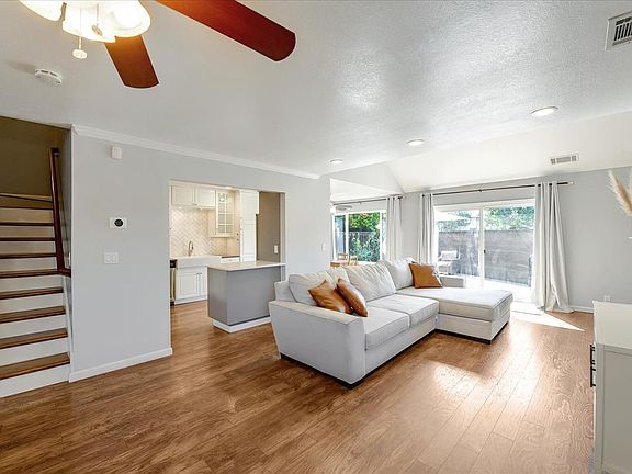 Welcome home to this gorgeous townhome with so many custom features. From the wood-like laminate floors to the custom tile work in the kitchen and the custom bathrooms, this home has been remodeled to perfection! The open kitchen features custom cabinets and counters, herringbone-patterned subway tile, farm sink, recessed lights, and stainless steel appliances. A matching buffet in the dining room gives you ample storage. Dine inside or out on the concrete patio. Upstairs the main bedroom features built-in cabinets, two closets, and an open bathroom with a custom shower. Upstairs are two more large bedrooms and an open loft for a play space or added work from home area. This home is located in Creekside Village, one of the most coveted communities in Morgan Hill, just two blocks from the train station and desirable downtown Morgan Hill. You'll be able to walk to the wonderful restaurants, shops, parks and events that Morgan Hill has to offer. This home is a must see!