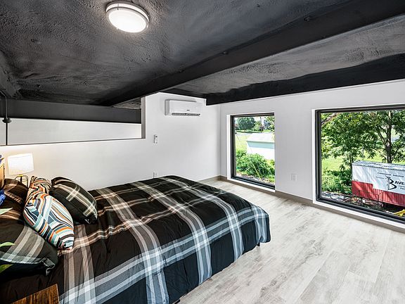 This is a one bedroom loft with 1.5 baths and has a deck off the main living area.