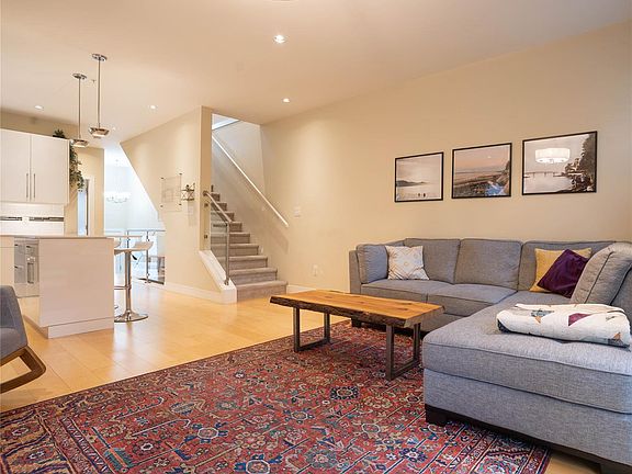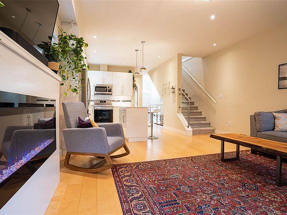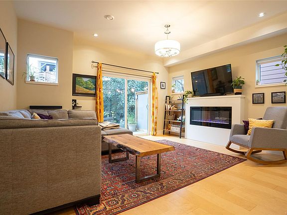 Welcome to 117–300 Phelps Ave, an impressive end-unit townhome offering 3 bedrooms and 3 bathrooms across 1,372 sq ft of well-designed living space steps from Thetis Lake Park and the Westshore trail network. Built in 2017 and exceptionally maintained, it provides low-maintenance living with modern finishes. The main level features an open-concept layout with 9 ft ceilings, a kitchen with quartz counters, stainless steel appliances, and a large island overlooking the dining and living areas with access to a private patio. A bedroom or office and a 2-piece bath complete this floor. Upstairs, the vaulted primary suite includes a walk-in closet and 4-piece ensuite, plus a second bedroom, full bath, skylights, and laundry. The lower level offers a garage, gym or workshop space, and storage. Enjoy a front balcony, outdoor patio, and a quiet setting minutes from schools, lakes, recreation, transit, and amenities—move-in ready for an active lifestyle.