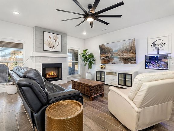 This enchanting 4 bed, 2 bath home in Snyder Grove is designed for modern luxury at an affordable price. With a welcoming front porch and countless upgrades, it stands out from other homes on the market. The open-concept layout features a spacious living room with vaulted ceilings and a cozy gas fireplace. The large kitchen, equipped with high-end appliances and ample counter space, is ideal for both casual meals and entertaining. The primary suite offers a luxurious retreat with its soaring ceiling, double sinks, separate tub and shower, and convenient laundry access. The additional bedrooms and upstairs bedroom/bonus room provide flexibility and enough space for family or guests. The attached three-car garage has an enclosed bay that is insulated with a built in dog run, catering to pet lovers. The fully fenced backyard is perfect for outdoor activities, with immediate access to the nearby aquatic center and park. This home combines comfort, style, and functionality, making it a perfect choice for your new home.