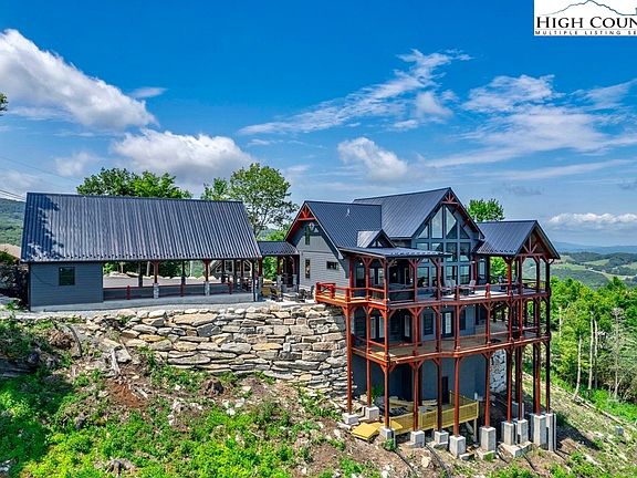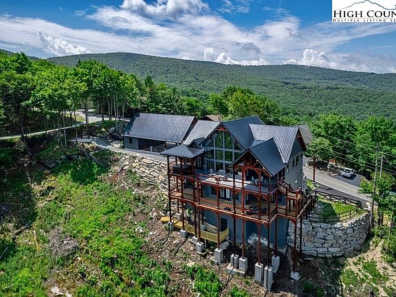 The perfect home DOES exist - Welcome to "Altitude Adjustment" this breathtaking mountain lodge was custom built in 2024 & offers the best LONG RANGE views money can buy! Rarely will you see homes w/ views that stretch as far as the eye can see from Beech Mountain into Tennessee & Virginia! Why build when you can everything you have been dreaming of in a mountain home. Perfectly situated on 2 lots for privacy this 5 BEDROOM (1 room is furnished as a bedroom but does not have a window)- 4 BATH masterpiece combines modern luxury w/ rustic mountain charm. Upon entry, you're greeted by soaring cathedral ceilings & an abundance of natural light from the floor to ceiling windows bringing the views indoors! The heart of the home is the great room & features a gas log stone fireplace for those chilly summer nights. The open floor plan perfectly connects the living, dining & kitchen areas w/ the chef's kitchen featuring quartz counters, high end cabinetry, a sleek farmhouse sink plus upgraded appliances. There are 2 bedroom suites on the main level w/ the primary having a luxurious soaker tub & walk-in shower. Step outside onto the covered & open rear decks, complete w/ a hot tub for soaking in the views. Descending to the lower level, the game room features pool & shuffle board tables as well as a half kitchen, bar & laundry room as well as 3 guest bedrooms (1 bedroom is furnished as a bedroom but does not have a window) & 2 full baths. A pavilion w/ parking & a single-car garage ensures convenience for mountain essentials. This lodge is furnished w/ high end furnishings & furniture from the Cabin Store. The owners spared no expense when building this home & it must be seen to be appreciated! The Beech Mtn Club membership is current & allows access to member only amenities. Located on a paved road at an elevation of 4500', this lodge combines accessibility, convenience & high-altitude living!