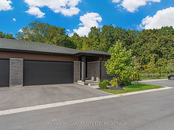 Welcome to 300 Richmond Street, a rare end-unit bungalow townhome in Thorold offering almost 2,000 sq. ft. of finished living space in a serene natural setting. Nestled at the edge of the development, this home features 2 bedrooms, 2 bathrooms, a double-car garage, a formal dining space, and a main-floor laundry room off the mudroom. It backs onto a protected forest, providing peaceful views and enhanced privacy. Inside, you'll find a bright, open-concept layout with hardwood floors, an upgraded kitchen featuring a dual island, and seamless indoor-outdoor living with two private decks. Both bathrooms showcase quartz countertops and tiled glass showers, combining elegance with everyday functionality. Main-floor living ensures comfort and accessibility without compromise. Whether you're looking to downsize or enjoy a low-maintenance lifestyle in a premium location, this move-in-ready home delivers the perfect balance of space, style, and tranquillity.