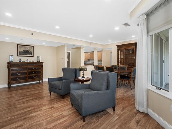 ELEVATED AND EFFORTLESS LIVING IN A PREMIER NORTH END ADDRESS! YOUR NEXT CHAPTER AWAITS! Located in a prestigious concierge building enjoy lock-and-leave convenience close to downtown’s restaurant, arts and sports scene. Drive past manicured grounds into an expansive heated garage where your reserved spot on the lobby level awaits. A quick elevator ride delivers you to a light-filled sanctuary showcasing serene seasonal views and impeccably finished interiors. A gracious foyer with parquet flooring and large storage closet sets a welcoming tone while freshly painted neutral hues, new crown molding and baseboards create timeless appeal. A wall of windows bathes open concept living and dining areas in natural light ideal for entertaining or relaxation. Express your inner chef in the kitchen replete with granite, tile, and a suite of stainless appliances. Grab your favorite beverage and adjourn to the porch to listen to soothing natural sounds and take in park-like views. Enjoy memorable meals in the dining room or entertain in the large living area. After the latest production at The Palace, return to a primary bedroom suite that delights with refreshed ensuite bath featuring high end finishes and a walk-in closet with custom built-ins for exceptional organization. A second bedroom is perfect for guests or an office. Rely on the concierge for secure package delivery and peace of mind while traveling. A BEAUTIFUL BLEND OF LUXURY, COMFORT AND EASE…A LIFESTYLE BY DESIGN!