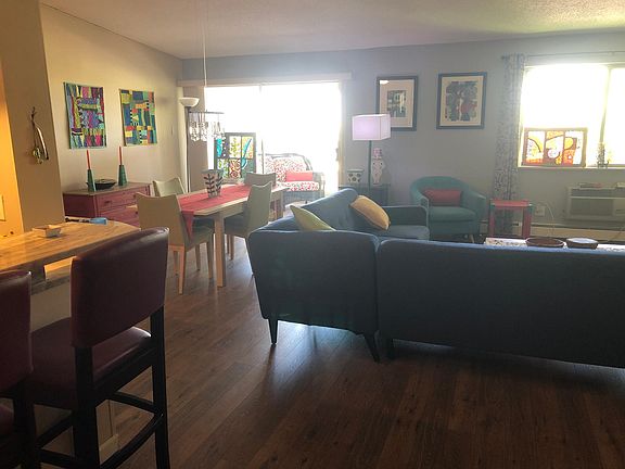 Rarely available 1470 sq ft condo fully renovated into a beautiful 2 bedroom and 2 bath modern open living space. The 4th floor vaulted ceilings make this unit light and bright. Well designed kitchen haas pullout drawers everywhere to allow the maximum usable space. Sparkling granite and custom tile coordinate beautifully with the upgraded stainless steel appliances. The lanai is enclosed with new vinyl windows to add even more room to an already spacious living area. The baths have new decorator touches with custom tile and beautiful tall vanities as well as new "adult-height" toilets. Additional private storage is located just down the hall. The convenient and rare underground parking space (with "cowboy" storage) is mere steps away from the elevator and a short walk through the garage exits directly across from Counterpoint, home to pools, classes and activities all included in the monthly HOA. Dues also include property taxes, heat, water, trash and 24/7 community response team.