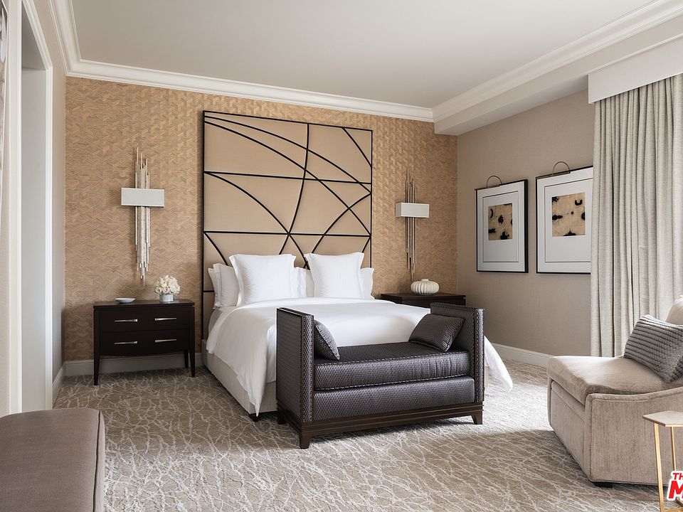 Special pricing for long-term residential stays, this recently remodeled Royal Suite located at Four Seasons Hotel Los Angeles at Beverly Hills includes gracious spaces with a modern, residential feel. Located on the 16th floor for extra privacy, with four balconies boasting panoramic views, large windows throughout the entire suite, and a range of luxurious amenities make this the perfect place to call home. Upon entering, a marble foyer welcomes you leading to a spacious living room, dining room that accommodates up to eight guests, and a convenient butler's pantry equipped with updated kitchen appliances that compliment the connecting bedroom with chic, modern decor and adjoining marble en-suite bathroom. Equipped with Four Seasons service with house-keeping, room service, and amenities.