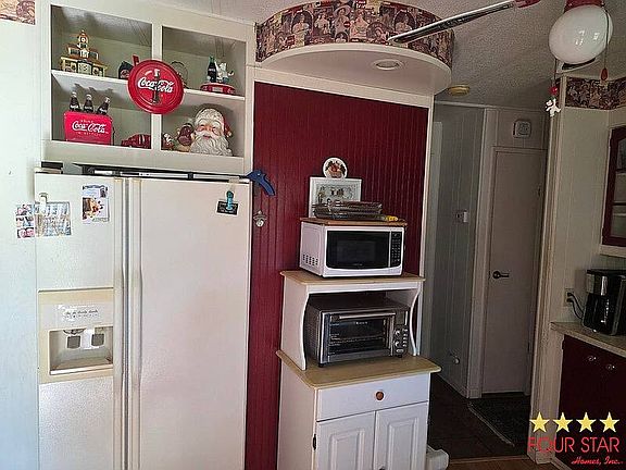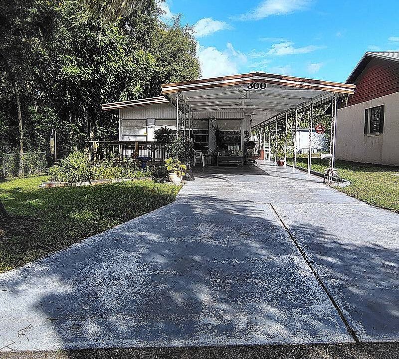PEACEFUL SETTING WITH PRIME LOCATION AND BEAUTIFUL UPDATES! This charming 2 bedroom, 2 bath doublewide offers the perfect blend of privacy and convenience, nestled between a serene tree line and the clubhouse, with billiards, workout equipment, a kitchen, darts, and more just steps away. You will love the quiet atmosphere that truly feels like your own private retreat. A stunning wooden deck welcomes you outdoors to relax or entertain, while the covered carport and long walkway lead to a spacious shed that houses the washer, dryer, and additional storage. Inside, you will find tasteful updates throughout, including contrasted painted walls and chair rails that accent each room beautifully, plus updated electrical and plumbing for peace of mind. The cozy electric fireplace stays with the home! The bright Florida room overlooks the deck and adds extra living or lounging space, enhancing the homes comfortable flow. This lovingly maintained home is move-in ready and perfectly positioned for both tranquility and access to community amenities. Do not miss your chance, schedule your private showing today!