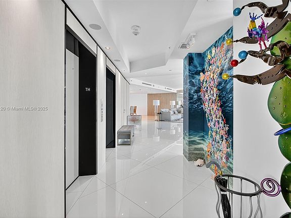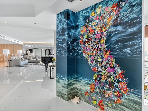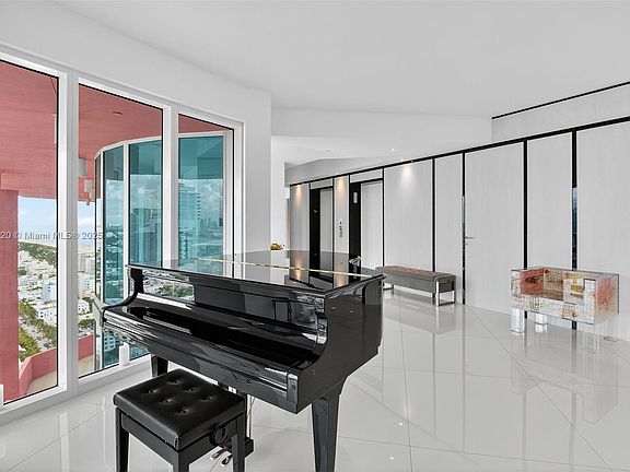 A dream home in the sky. 2-floor residence, boasting 5,450 SqFt to easily accommodate any special event or entertaining occasion. Mega sized flow-through living room and open kitchen with a bridge encased in glass leading to an 800+ SqFt panoramic Great Room. Endless direct views of the Atlantic Ocean, Biscayne Bay, Miami Skyline, and South Beach both day and night with incredible sunrises and sunsets. The lower floor of this townhouse offers all 3 bedrooms, providing excellent privacy and separation of space. The master bedroom overlooking the ocean offers his and hers bathrooms and closets, spa-like bathroom including a double rain shower and separate large jacuzzi tub with an ocean view.