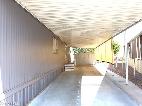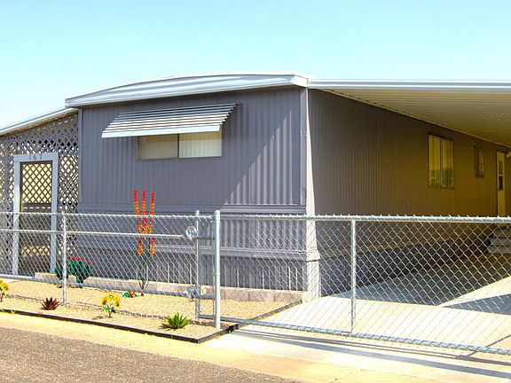 Welcome to this beautifully maintained 2-bedroom, 1.5-bathroom manufactured home in the desirable Sunrise Vista gated neighborhood. This home offers a freshly painted exterior, a covered patio perfect for relaxing, and a spacious fenced-in backyard for added privacy. You will find a convenient laundry room with a washer and dryer, making daily tasks a breeze. Additional features include two storage sheds, providing ample space for all your tools and belongings.