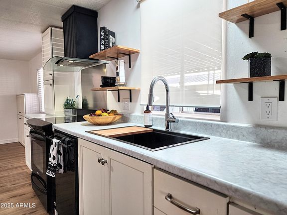Discover your perfect home in a vibrant 55+ Mesa community with LOW LOT RENT! At the heart of this fully renovated 3-bed, 2-bath mobile home is a gorgeous new kitchen, a spacious open floor plan, new LVP flooring, updated bathrooms, NEW 2024 AC and water heater, newly coated roof, fresh paint inside and out, Huge primary closet and updated CPVC plumbing. Enjoy a large deck, Full wheelchair ramp, and large storage shed. Home is Like new and move-in ready! MUST SEE!!
