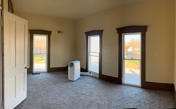 Beautiful quadplex in downtown Hagerstown IN at the intersection of S Washington and Clay. Small town living. Great neighbors in the other three apartments. Upstairs apartment with 1 BR, 1 BA, large living room and bedroom. LPV Wood-look will be in the bathroom and kitchen, carpet in the living room, hall and bedroom. Tenant pays own electric/water/sewer. Lawncare and trash service provided. Pets are welcome with owner approval and additional $50/mo pet, limit 2 pets. Non-refundable $250 pet deposit. No smoking in the apartment. Close to all things Hagerstown. 30 minutes from Richmond. 60 minutes from Indy. Security deposit equal to a month's rent. Non-refundable application fee. Credit report will be run.