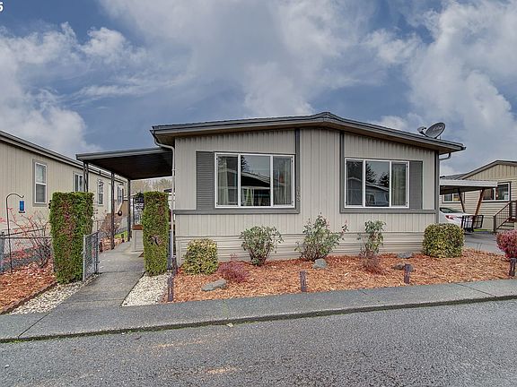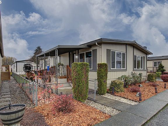 Welcome Home to this beautifully updated Two Bed, Two Bath in wonderfully well cared for 55+ community. Enjoy your own private fenced backyard lawn w/ large producing blueberry bushes, carport w/ storage shed, wheel-chair ramp, Wood Decks on both sides for access and entertainment, New laminate flooring and paint throughout, Stainless kitchen appliances w/ refrigerator & Dishwasher. Walk-in Laundry room includes washer, dryer & utility sink. Living room includes 75 inch TV w/ surround sound and console w/ fireplace heater, Forced Air Furnace with AC, Upgraded Dual-pane vinyl windows, Includes Arlo security cameras, Primary Bedroom with spacious Bathroom and walk-in shower. Enjoy neighborhood gatherings in the community center, Raised garden beds, grass area with fire-pit and pickle ball court. Just minutes to shopping, restaurants, medical & public transit.