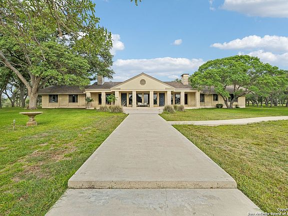Available only for the third time in its history is this breathtaking 24-acre Hill Country estate overlooking Canyon Lake at The Peninsula at Mystic Shores. Originally the headquarters of the 711 Ranch established in 1949, 300 Saga Street is a magnificent property comprised of a Roger Rasbach-designed six-bedroom, six full bath and two half bath main house, swimming pool and pool house, a two-bedroom, two bath guest house, studio, outdoor cabana and four car garage with apartment. Exceptionally maintained and sitting under a canopy of hundreds of majestic oak trees, the property is perched over the lake and boasts over 1500 feet of unobscured views of the water and surrounding Hill Country. The main house is a beautifully preserved Mid-Century masterpiece with clean lines, floor-to-ceiling windows, open floor plan, impressive wood paneling and accents and original Terrazzo flooring. Off the stunning entry is the grand, formal living room with massive fireplace that overlooks the grounds and lakefront. Adjacent on one side is the formal dining room with its rich bank of built-ins, and on the other side is a spacious den with full wet bar with a wall of windows that frame the lush hill country landscape. Across from these formal living and dining spaces, you'll find a large breakfast room, butler's pantry, and full kitchen with large walk-in pantry and private prep/staging area. The large primary suite is secluded off the living side of the estate with his- and her- baths. The remaining ample-sized bedrooms are located on the opposite wing of the house. Out back, there's a large, covered patio that overlooks the lake, grounds and sparkling pool. The pool house sits just to the side of the main house, and has a comfortable living area, wet bar and his and her changing rooms. There's a four-car garage opposite the house, with an apartment attached. Just down from it, you'll find the two-bedroom, two bath guest house with living, dining, kitchen and sitting areas, as well as a screened-in porch. This amazing property also features a studio, outdoor cabana and grilling area and additional carport and outdoor storage building. There literally is so much to behold, and the possibilities for its present and future - with its premier waterfront location, existing footprint and available land - are endless. This property is agent open. Please provide 12-24 hours advance notice.