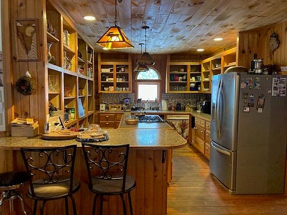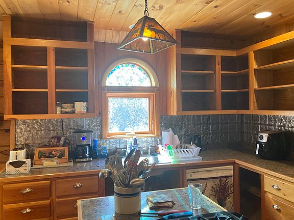 Cape-style log home situated on 5.72+/- private acres. Cozy and inviting inside, the home features a propane fireplace, a pellet stove and a furnace to keep you warm on those chilly nights. The main floor offers a spacious, open-concept layout with a large living area that flows seamlessly into the kitchen and dining space. The primary bedroom includes a bathroom with a walk-in shower. On the opposite side of the home, you'll find a 3/4 bath with laundry and a second bedroom. The upstairs is a blank canvas, ready to be finished into additional living space, complete with plumbing for a half bath. Outside enjoy the farmer's porch perfect for relaxing or hosting a cookout. A generously sized shed is included to meet all your storage needs. Conveniently located close to New London for all your shopping needs. Home is being sold as-is. Seller needs to find suitable housing. No V.A. or FHA loans.