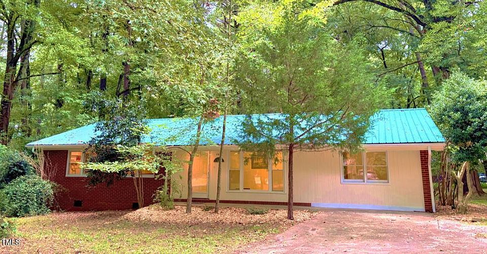 Charming 1962 Ranch-Style Home in the Heart of Carrboro. Nestled in a prime location, just steps from the bustling Carrboro center, this 1962 ranch-style home combines classic charm with potential. With its sturdy metal sky-blue roof, freshly painted exterior and interior, and original hardwood floors, this home is ready for you to move in and make your own. Boasting 3 bedrooms, 1.5 baths, and a bonus room that offers endless possibilities—whether you use it as a spacious bedroom, a den or a creative studio—this home provides flexibility to suit your lifestyle. The current layout features big, beautiful windows that bathe the space in natural light, highlighting the built-in bookcases in both the living room and one of the bedrooms, adding warmth and character. The inviting living spaces flow seamlessly into a stone patio area, perfect for outdoor entertaining, gardening, or simply enjoying the peaceful surroundings. With easy access to the city bus line and nearby bike lanes, getting around Carrboro and beyond is a breeze. For kids in the family, the Simpson Park Community Playground is right across the street at 301 Simpson Street. The home is set on a large (0.81 acre) lot, with an expansive yard complete with raised garden beds, ready for your green thumb to bring them to life. Whether you're seeking a move-in ready home to update at your leisure or a solid foundation to renovate, this home offers incredible potential. Just minutes from shopping, dining, schools, and the new Carrboro Art Center, this property offers the ideal blend of convenience, character, and opportunity. Don't miss your chance to own a piece of Carrboro's vibrant community!
