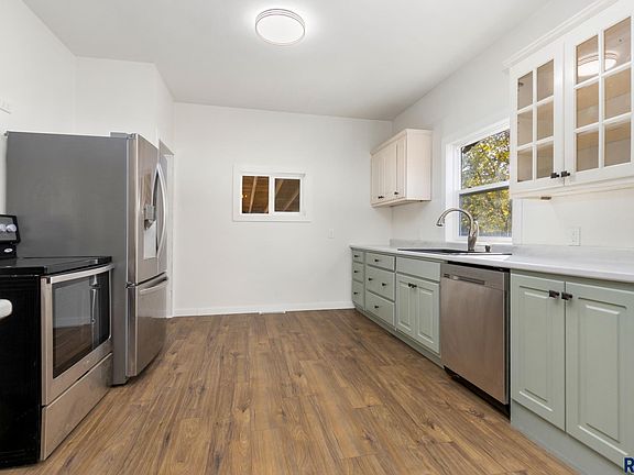 Welcome home to this charming, beautifully updated home on a spacious corner lot! Featuring a newly redone sun porch, this home combines classic character with modern comfort. The spacious main floor flows seamlessly from the kitchen to the living and dining room, as well as a den space, ideal for relaxation and entertaining. A convenient half bath completes the main floor. Upstairs, you will find 3 cozy bedrooms, including 1 bedroom with a built in bed structure. New flooring throughout the home. Outdoors, enjoy a huge fenced yard and an amazing, dedicated entertainment area, complete with fireplace and built in grill. Storage abounds in this home with large closets and an unfinished basement, ready for your personal touch. Recent updates to the road, curbs and sidewalks were all completed in the last 12 months. Located just 2 blocks from the city park and pool, and a short distance to several lakes and Brookings, its an ideal spot for easy access to nature and recreational fun.