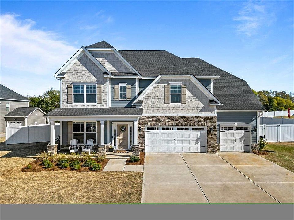 Better than NEW Parker’s Landing home! 5 bedroom/4 bathroom/3 car garage is a BEAUTY on .57-acre lot that is PRIVACY FENCED for the kiddos or pets ??Luxury vinyl tile greets you in the large foyer and leads you to the formal dining room featuring WAINSCOTTING and CROWN MOLDING. Pass through the BUTLERS PANTRY and drop off the keys and groceries. The kitchen is a dream with a MASSIVE QUARTZ BREAKFAST BAR/WORK ISLAND, STAINLESS APPLIANCES including CONVECTION OVEN + REFRIGERATOR! The breakfast area overlooks the patio and back yard. The living room boasts COFFERED CEILING and gas log fireplace + leads to the HUGE SUNROOM. Full bedroom and bath on the main level for guests or office. UPSTAIRS: At the top of the stairs is where you will find everyone…it’s the MEDIA ROOM wired for surround sound and a projector plug in! The master suite is oversized and features garden tub, dual vanities, separate shower and walk-in closet. Each of the other 3 bedrooms upstairs are oversized.