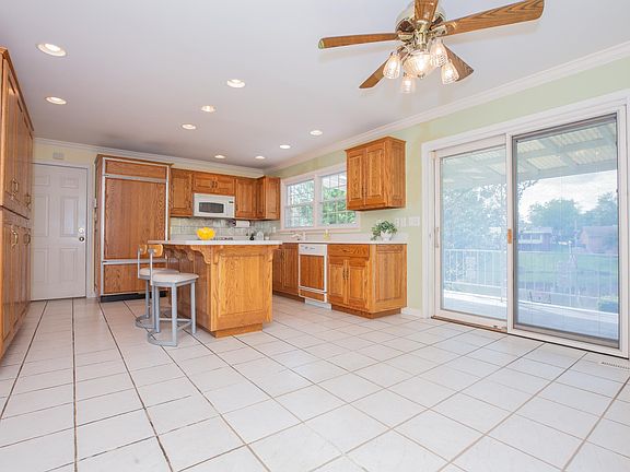Lake house with a finished walkout basement on 1.23 acres and a separate 2 car garage w/extra storage space for riding mower! 4 bedrooms on 3 levels all offer beautiful lake views. Over 4000 square feet of flexible living area perfect for entertaining and relaxation. Dining room with rich oak floor and living room with fireplace feature floor to ceiling windows. Kitchen features abundance of custom Fehrenbacher cabinets, island bar, solid surface counter tops, Sub Zero refrigerator and gas cooktop. Pella door in breakfast room leads onto covered deck for outdoor dining and entertaining. Primary bedroom on main level features two closets and ensuite full bathroom. Two large bedrooms upstairs have walk-in closets and additional floored attic space. Jack & Jill bathroom and additional vanity in second bedroom. Full finished basement has a brick masonry fireplace w/wood burning stove and built in cabinetry. Flex space perfect for home office. Recreation room has a full wet bar, refrigerator, mirrored wall, custom cabinetry and a train at the ceiling. Laundry center with sink. Bedroom with large closet and oversized windows to enjoy the views. Access from walk out basement to covered and open patio and hot tub. Walkway leads to floating dock and paddle boat. Attached heated garage has a full wall of cabinets, refrigerator, sink, floor drains, insulated doors and abundant light from windows on both sides. 2 car attached PLUS 2 car detached garage, insulated with wood walls and ceiling & floored attic, riding mower storage. Newer roof, updated hvac, awnings and very well maintained. Rare opportunity priced to sell and add your own decorative style.