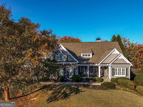 Welcome to Southern Lights in Great Sky-one of Canton's best-kept secrets. Here, you get the feel of North Georgia's natural beauty while staying just minutes from Riverstone Parkway shopping, downtown Canton, and the Mill area. Great Sky truly lives up to its name, offering elevated panoramic views, a scenic lake, mature trees, and miles of sidewalks and nature trails to explore. The amenities are exceptional: a beautiful community center, tennis and pickleball courts, multiple pools, a fun water slide, and a playful water mushroom the kids will love. Plus, the brand-new Cherokee High School is set to open in fall 2026. The home itself is filled with natural light and features an ideal, highly functional floor plan. The primary suite is conveniently located on the main level-along with two additional bedrooms. Upstairs, you'll find a private guest suite, and the terrace level offers another bedroom with its own en-suite bath. Throughout the home are high coffered ceilings, hardwood floors, and well-maintained finishes. A three-car garage, plus a terrace-level workshop with double doors, provides terrific storage and hobby space. Outdoor living is just as inviting, with a flagstone front porch perfect for sunrise views, a main-level deck, and a covered lower deck ideal for entertaining.