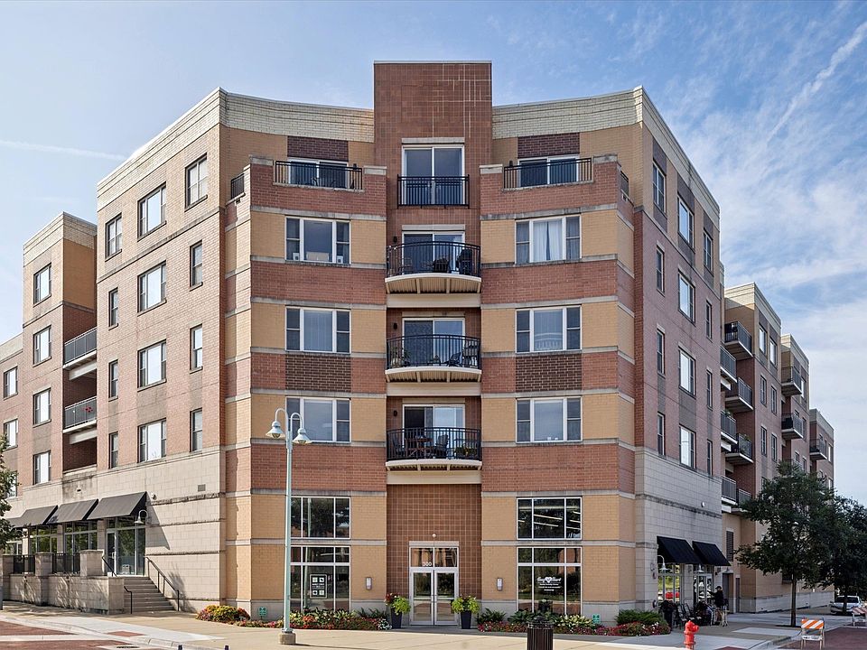 This natural light filled northwest corner condo offers an open concept living/dining and kitchen space. There are hardwood floors throughout and custom plantation shutters. The kitchen opens to a balcony for morning coffee or evening grilling. Enjoy new stainless appliances and a large kitchen island that offers additional seating. The primary suite has a large double sink and both walk-in shower and separate tub. Closets have custom built-in organizers along with additional storage throughout the unit. A new washer and dryer provides for in-unit laundry. Amenities include an outdoor heated pool and clubhouse, heated parking garage, exercise room, storage cage and bike storage areas. Conveniently located near the commuter train, restaurants and shops, walking paths and village hall.
