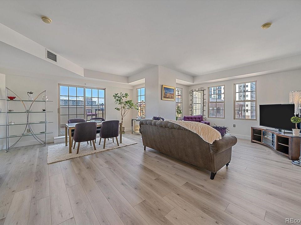 Rare opportunity in The Golden Triangle's Prado to enjoy a condo with two private balconies: one facing west with unobstructed mountain views, and the other facing north with stunning Downtown Denver views, perfect for sunsets, city lights, and even watching fireworks. This beautifully updated 2-bedroom, 2-bath condo offers the perfect blend of comfort, convenience, and breathtaking views. Inside, the large family room and dining area showcase new LVP flooring, abundant natural light, and windows framing both mountain and city views. The remodeled kitchen features granite counters, an undermount sink, newer appliances, fresh pendant lighting, and rustic modern finishes. Fresh paint, updated baseboards, and thoughtful touches make this condo move-in ready. The spacious primary suite features a walk-in closet, access to the north-facing balcony and a 3/4 ensuite bathroom. A secondary bedroom with west-facing views also makes a great office and is situated next to an updated 3/4 bathroom. Additional features include in-unit laundry with washer and dryer included, one parking space in a heated, secure garage, and rare opportunity to have two storage units (one large, one small). The Prado offers a secure entrance, onsite property management and unbeatable walkability—just steps from Schoolyard Beer Garden, Metropolis Coffee (on the main level) and walking distance to the Denver Art Museum, Civic Park, countless restaurants, shops, and all that downtown Denver has to offer. This condo truly checks all the boxes: modern updates, lock-and-leave convenience, and unmatched views! Be sure to check out the floor plans with the photos as well as the 3D tour!