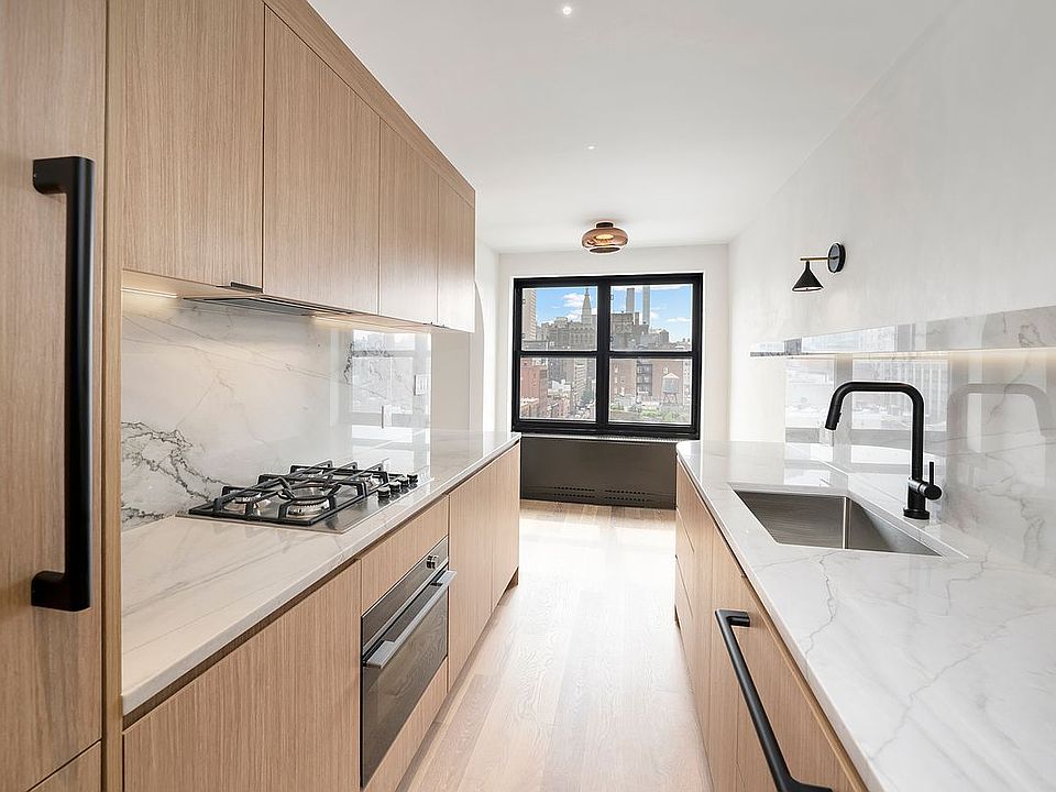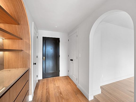 This sun-drenched, rarely available, high-floor 1-bedroom in the heart of Chelsea blends timeless architecture with bold, custom modern design. Fully gut-renovated, the apartment features north and east exposures with direct views of the Empire State Building and stunning morning light. The custom kitchen is a showpiece—sleek quartzite counters, fully integrated appliances, warm wood cabinetry, and ambient accent lighting all framed by elegant arched detailing that flows throughout the apartment.