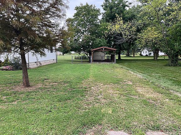 Outdoors, enjoy the large fenced yard with mature shade trees, perfect for relaxing or entertaining. The property includes covered front and back porches, an oversized heated two-car garage (with the option to keep the storm shelter), a carport, and an outbuilding for additional storage or workspace.