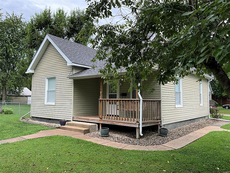 Beautifully updated 2-bedroom, 1.5-bath home situated on a spacious fenced double lot. Enjoy the outdoors with a large back patio, perfect for entertaining, and a cozy covered front porch for relaxing. The generously sized kitchen boasts modern stainless steel appliances, while the laundry room comes fully equipped with a washer and dryer. Recent updates include new flooring, updated lighting, freshly painted walls and a newer sewer line, ensuring peace of mind. A one-car garage adds extra storage space. This home is truly turnkey—super clean -- just move in and start making it your own.
