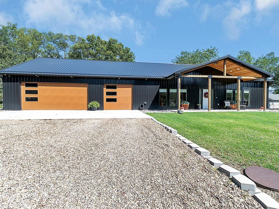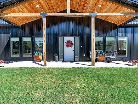 This single family home built in 2021 (finished in 2022) is practically new and ready for its new owners. The sellers absolute love everything about this home from the modern (barndomium look) on exterior to the open floorplan living/kitchen area with island that seats 6 people easily. The kitchen shows like a model home for new construction with soft close wood cabinets, white quartz countertops, gas range, stainless KitchenAid appliances, 8x5 ft oversized island, and more. The quality of the materials in this kitchen are rarely found in homes of this price range and you would think you stepped into a $500K home without doubt. Down the center of the home is a large oversized hallway (very easily wheelchair accessible) with 3 bedrooms on either side, full hall bath for guests, and additional full 2nd bath off the primary bedroom. The primary suite has large walk in closet, modern vanities, and exquisite, tiled in shower. There is also a large mud/laundry room with plenty of room for extra storage that leads out to the large extended (oversized) 3 car garage. In the garage are also additional storage rooms with a built in storm shelter, tankless hot water heater, and even water softener that is included. This is priced to move so come see this one before it is gone.