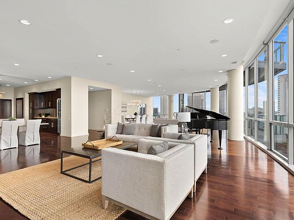 SPACIOUS like a house w/convenience of maintenance free condo life! Comfortably hosts >40 guests! Perfect for holiday gatherings, 15th-floor condo seamlessly combines 2 units, offering ample space for family/friends to stay for extended periods all while maintaining private liv quarters. Nearly 5K sqft of meticulously designed space; show stopping views w/floor to ceiling windows showcasing the cityscape, 3 bdrms includes 2 primary bedrms w/ensuites, office & workout rm/4th bdrm. Chefs kitch: Wolf range, SubZero frig, custom cabinets & island overlook grand living area. 2 balconies w/400+ sqft of outdoor space w/50ft panoramic views of skyline, river & Scioto Mile. 2 storage units & 2 parking spaces (options for a 3rd space). Building offers concierge, new gym, guest suite & lounge area.
