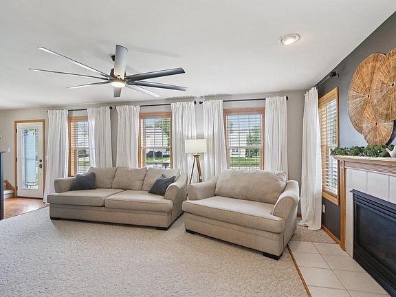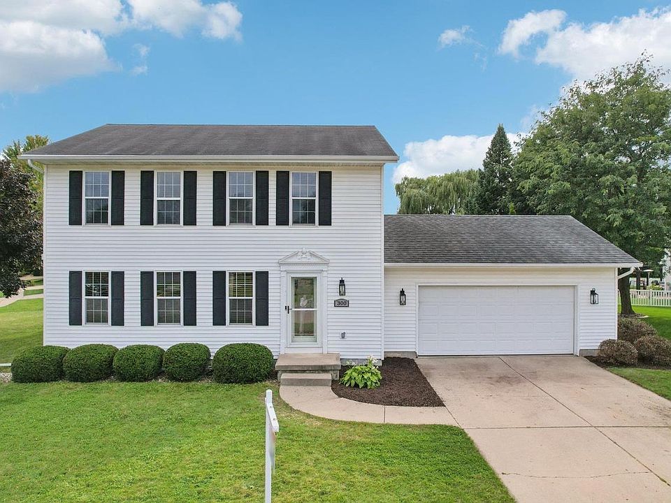 COLONIAL CHARM...Gorgeous 2-Story Home Featuring 4 Bedrooms, 2 Full + 2 Half Baths, 1st Floor Laundry & 2 Car Garage! HUGE Kitchen w/Hardwood Floors, Breakfast Bar, Stainless Steel Appliances, Pantry, Lots of Cabinets + Dinette Area that opens to Living Room w/Gas Fireplace + Sunroom w/Cathedral Ceilings! Spacious Primary Suite w/Large Walk-in Closet & Private Full Bath w/Whirlpool Tub + Shower! Finished Lower Level with Humongous Family Room....Great for Entertaining! Walking Distance to Prairie School! Tons of Closets & Storage! New Hot Water Heater-2023!