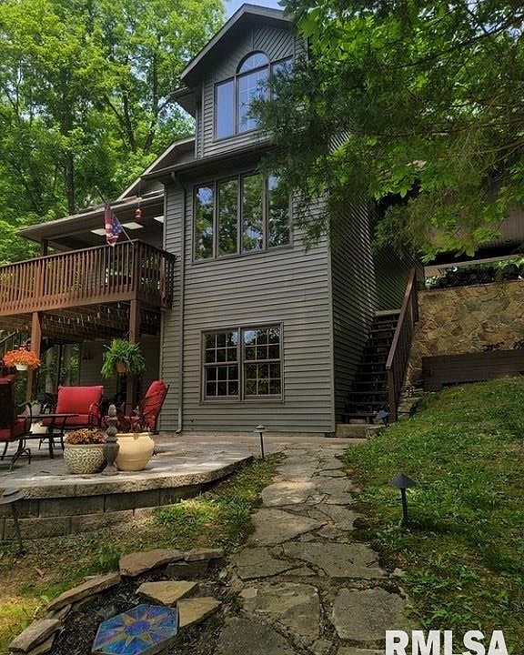 Beautiful waterfront home on the Lake of Egypt with approximately 142 feet of waterfront. This property has everything you are looking for - a covered dock, large 2 car garage plus another carport, extra bonus room inside the garage and also above the garage for storage, beautiful view of the lake as you are sitting on the large deck, and only a small slope to the water. Plus, an absolutely beautiful home with a lovely wood burning fireplace. There are no covenants or restrictions so this could be used as an AirBNB. Seller would be open the selling the furniture separately. The road is presently gravel but will be oil and chip within the next few months.