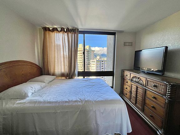 1 Bedroom, 1 Bathroom, 1 Den, 1 Parking, in the lush Liliuokalani Gardens Complex with Pool, Hot Tub, BBQ, Tennis Court, located in Waikiki just 2 blocks from the Beach. Honolulu Zoo is 2 blocks away, Kapiolani Park with it's jogging path and expansive fields is 3 blocks away, Kapahulu Ave with all it's restaurants are right up the road, and of course you are amongst all the shops, restaurants and beaches of Waikiki. Unit is fully furnished. Unit has Central A/C. Electricity is tenant's responsibility. Hot Water, Internet, Streaming TV from Spectrum, and 1 Parking is included. Parking is compact so be aware. Limited Guest Parking is available.