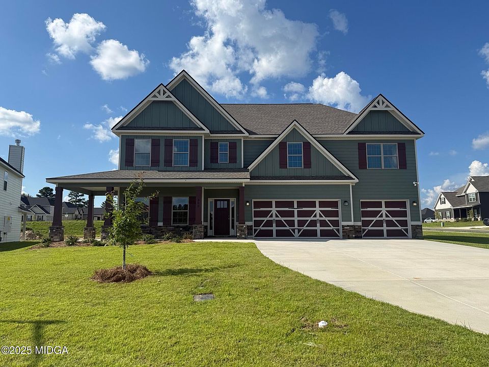 Plenty of Space for Everyone! Impressive Entry Foyer, Formal Dining Room Boasts Tons of Trim Detail, Generously sized Great Room w/ woodburning Fireplace, Stunning Gourmet Kitchen with Stylish Cabinetry, Granite Countertops, Tiled Backsplash & Built in Stainless Appliances w/ Gas Cooktop & Stylish Vent Hood, Walk in Pantry for additional Storage. Huge Kitchen Island creating an ideal workspace overlooking Breakfast Area & Great Room. Owner's Entry Boasts Our Signature Drop Zone, the Perfect Catch-All. 5th Bedroom & Full Bath located on Main Level for Guests. Upstairs Leads to a Versatile Media Room, perfect for 2nd Living Space. Oversized Owner's Suite w/ Specialty Ceilings creates a private cozy getaway. Owner's Bath with Garden Tub, Tiled Shower, Tons of Vanity Space & Large Walk in Closet. Additional Bedrooms are Spacious with Ample Closet Space, & Private access to Baths. Enjoy Hardwood Flooring throughout Living Spaces on Main Level & Tons of Hughston Homes Included Features. Our Signature Gameday Patio with Wood Burning Fireplace is an Ideal Space for Fall Outdoor Entertaining