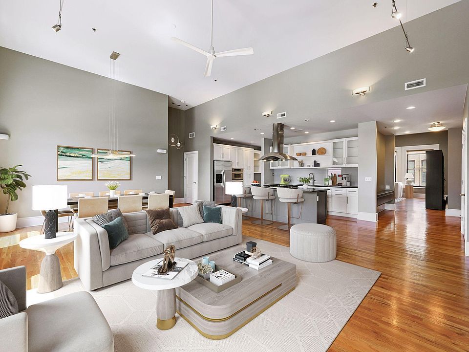 Enjoy city living at its best w/this absolutely Stunning Penthouse suite. With a whopping 2400(+) sqft, this 2BD/2BA unit boasts 12-ft ceilings w/ Modern sophisticated updates. This is the 1st time this unit has become available since the 2003 conversion of the historic Great Northern Lofts building. As you take your first steps into the unit, you will be greeted by a very spacious foyer which features custom built-in floating cabinetry, a coat closet to your "Left" just off of the LR & a HUGE walk-in closet to your "Right" for add. storage just around the corner in the FR. From the foyer, you have the option of heading in either direction - Living room "left" OR Family room "right". For now, we’ll continue "left", stepping into the main Living room featuring more custom cabinetry w/elegant track lighting & a gorgeous floor-to-ceiling tiled gas fireplace (Designed & Built by, David Heide Design Studio/Wagner & Lang Construction), as well as Hunter Douglas motorized shades which stretch into the generously-sized Formal dining room w/its elegant custom lighting. The kitchen, which was remodeled in 2016 by Partners 4, Design, offers beautiful custom backpainted glass backsplashes by GlassArt Design, Custom Crystal Cabinets, open shelving over the kitchen sink, LED lighting, granite countertops & SS appliances w/ add. wine fridge. The spacious kitchen wraps around the corner to reveal a large pantry & coffee bar/work zone w/ loads of add. storage. The primary BD sits off of the main living room & features oak hardwood floors (installed in 2019 by River City Hardwoods), LED lighting, Hunter Douglas motorized shades, & a Custom bench and jewelry cabinet by Closet Factory. The primary BA was completely gutted & remodeled in 2015 by Partners 4, Design & features a Corian shower, tub platform & vanity countertop, Natural limestone tile w/ in-floor heat, Dornbracht faucets & tub filler, Custom Poggenpohl cabinetry, Wetstyle Cube soaking tub, Kohler bath accessories, Heated towel bar & Lighted mirrors. The 2nd BD, located on the opposite end of this unit, functions as a multi-purpose space with a custom rolling paneled wall, hardwood floors, brand new LED lighting, a built-in Murphy bed, custom office cabinetry & matching rolling desks. Both BDs also feature “Closet Factory” closets. The 2nd BA which was remodeled in 2018, (also by Partners 4, Design) offers even more Custom cabinetry (by Crystal Cabinetry), Quartz countertop, walk-in shower, Kohler bath fixtures, LED lighting and lighted mirror. Custom roller shades and brand new LED lighting are available in the very spacious Family room found just off the 2nd BD & to the "right" side of the Front foyer. The private in-unit laundry room is located just off of the 2nd BD, BA, & FR space with high-end front load LG machines (purchased in 2023), cabinet storage & new quartz countertops! All rooms were repainted in 2022 by Summit Painting and Restoration. FINALLY, head up the staircase just outside of the unit's entrance to the building rooftop. Here you will find a massive private rooftop patio, great for evening entertainment OR rooftop gardening! Building amenities abound - 2 off-street parking spaces (#215 and 216), party & exercise room, private courtyard patio, bike storage & add. storage locker #49 in basement. Near Farmers Market, CHS Field & plethora of Bars, Restaurants & parks!