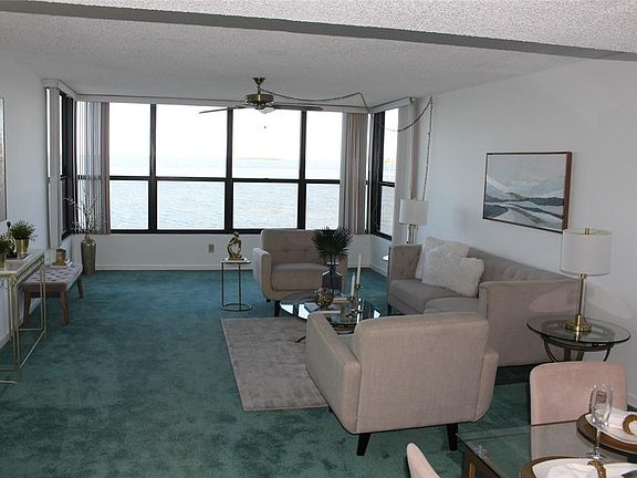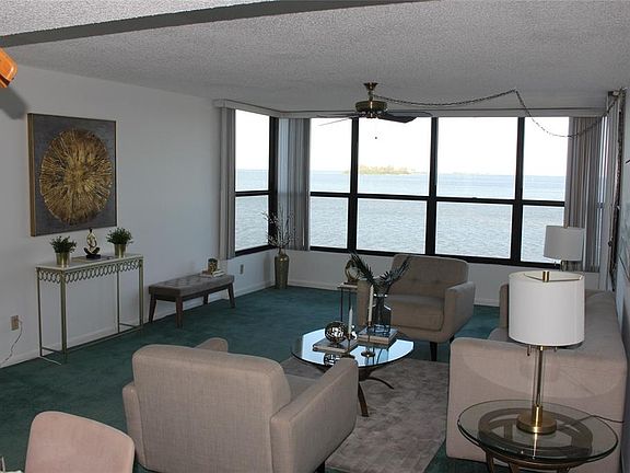 Welcome to Island Towers, Dunedin’s hidden gem on the Causeway! This spacious 1,180-square-foot 2-bedroom, 2-bath condo offers a picture window panoramic open view of St, Joseph Sound. A perfect blend of comfort, coastal charm, and convenience — just minutes from Honeymoon Island State Park and the vibrant shops and restaurants of Downtown Dunedin and golf course Stroll over to Frenchy's Bar and grill and along with additional restaurants and shopping close by. The heated waterfront pool overlooks the intracoastal waterway. Unit comes with one covered parking space #34 with plenty of guest parking. There is a fishing pier and kayak/canoe launch on property, horseshoes, shuffleboard and saunas, There is a clubhouse with fitness room, game room (ping-pong/pool table), saunas, and lounge space. The HOA covers water, sewer, trash, cable/internet, exterior building maintenance, roof and reserves, building and building flood insurance. — for a worry-free lifestyle. Island Towers is not a 55+ community — all ages welcome. Schedule your private showing today! Condo unit must be owned 1 year before being allowed to rent. The minimun leasing period is 3 months. No dogs allowed, cats permitted with board approval. The unit is staged and the furnishings and furniture are available for purchase, All dimensions are estimated, buyer should measure rooms for exact sizes and verify all printed information.