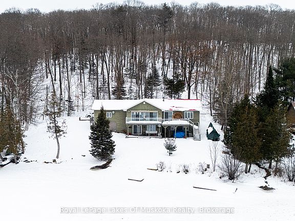Welcome to your year round waterfront oasis on Lake Cecebe, one of five lakes connected to become the premier lake chain in the area featuring over 40 miles of boating and lake enjoyment! This bright, open concept bungalow with warm pine accents features south western lake views and expansive decking and sitting areas on the lake side with a forest across the road adding to your private enjoyment of the property. Renovated since purchase, this over 2200 sq. ft. home also features granite countertops, huge main bathroom with walk-in shower, and large dining room with lake views. Three bedrooms on the main floor with the primary having a walk out to the lakeside deck. Bright lower level features a family room with walk out to a covered sitting area and a WETT certified wood stove to cozy up to on chilly spring or fall mornings. Also located in the lower level is a huge additional bedroom complete with full bathroom and laundry facilities. Walk out of the home down the gently sloped lot to the sand-bottomed shoreline and extensive floating dock with plenty of room for everyone sit and enjoy the waterfront. Just a short drive outside the welcoming village of Burk's Falls and the highway, this home is close to all amenities to add convenience to your cottaging life.