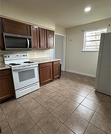 3 bedrooms, 2 full baths, 1 story flat, bottom unit for rent! 1,280 sq.ft living space. Enter into the large living room with a spacious closet at the front door. The kitchen comes with a refrigerator, microwave and range oven. No dishwasher. Washer/Dryer hookups are in the kitchen. No carpet. The bedrooms have laminate flooring, and the living room, kitchen and bathrooms are all tiled. There are 7 total closets for your storage needs. The primary bedroom has an ensuite bathroom. The hall bathroom is near the other two bedrooms down the second hallway. The new recessed lighting and windows bring in so much light. Walk outside to see the covered back porch and large shared yard space which is fully fenced in. You are welcome to bring your own storage shed to put in the backyard if you'd like. This unit has street parking available directly in front of the home as the driveway is used by the upstairs tenant only. Tenants are responsible for electricity and water. There is no gas service on the property. Pets may be allowed at owner's sole discretion with a $500 non-refundable pet fee. No smoking inside or in the doorways of the home. Vouchers are accepted too! The application link and QR Code are in the pictures; Apply today!