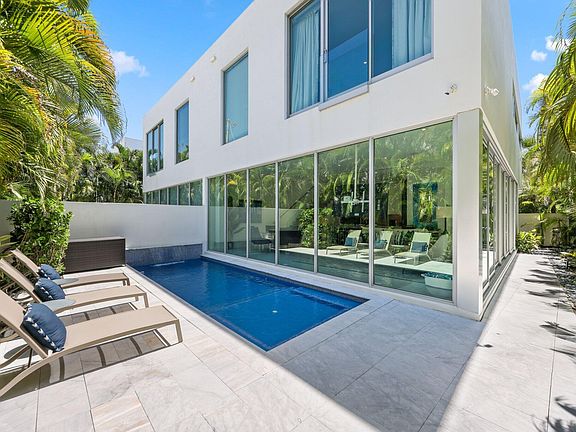 Absolutely stunning and impeccably maintained modern beachside home. This furnished townhome is perfectly situated just one block from Boca Raton's pristine beach and moments from restaurants and shops of Deerfield Beach. Designed with an open floor plan and dramatic floor-to-ceiling windows, this residence is filled with natural light and offers serene views of the private pool, loggia, and lush tropical landscaping. From the moment you enter the impressive foyer, you are welcomed into your own slice of paradise. The gourmet kitchen features Sub-Zero appliances, a natural gas cooktop, custom floor-to-ceiling soft-close cabinetry, and an oversized walk-in pantry. Each of the three spacious bedrooms are en suite, while the primary suite and spa-like bath showcase captivating ocean views.
