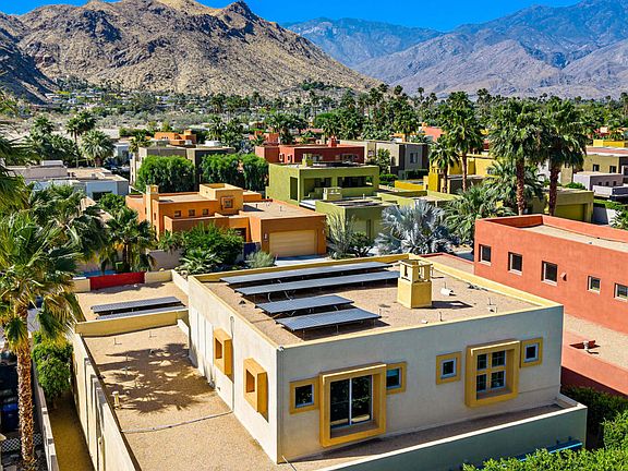 Representing one of the best overall values in all of South Palm Springs! This inviting contemporary home in the highly sought-after Luminaire community--an intimate enclave in South Palm Springs inspired by the iconic architectural style of Ricardo Legorreta and Luis Barragan. Effortlessly stylish, this home embodies the essence of the Palm Springs lifestyle. Behind private gates, a charming courtyard with a fireplace and fountain sets the tone. Inside, you'll discover a beautifully crafted modern residence with clean architectural lines, sleek finishes, and nearly 3,000 square feet of well-appointed living space that is highlighted by modern tile flooring, high ceilings, and natural light. At the heart of the home is a gourmet kitchen with Cambria Quartz countertops, built-in stainless-steel appliances, and an expansive eat-in island--ideal for both casual dining and entertaining. The spacious dining area flows seamlessly into the Great Room with a gas fireplace, all overlooking the private backyard and pool area. The outside living area is the perfect place to relax or entertain. Complete with a sparkling salt water Pebble Tec pool & spa, tranquil waterfall accents, expansive electric retractable awnings, outdoor lighting, and a built-in BBQ. One of the home's standout features is the spacious upstairs guest casita, offering a mini kitchen, bath, sleep number murphy bed and a private patio with breathtaking mountain views. This exceptional property blends architectural distinction with modern comfort--offering the ultimate Palm Springs retreat. Bonus: Solar energy & Apex water conditioning system. Please Note: Google Maps Street View is Inaccurate.