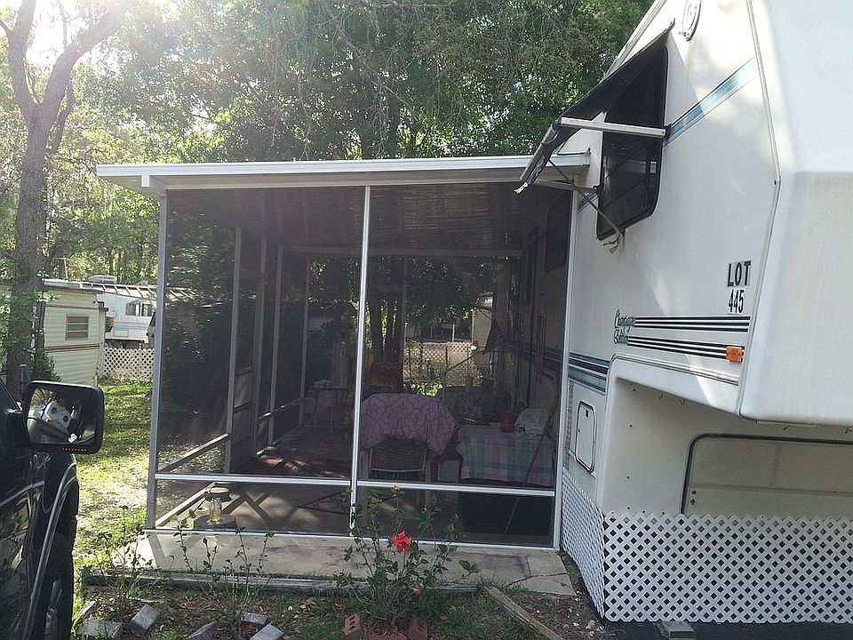 No more lot rent! You own the land! This property is in a gated Community. Comes with a move-in ready 5th wheel with an attached screen room and storage shed. 5th wheel is directly hooked up to sewer so you don't have to deal with a holding tank. The community has a 110,000 gallon pool, Club House and other recreational amenities. HOA dues are only $236/month and includes water, sewer and trash pickup. Property tax was only $271 in 2023. Owner will consider financing for qualified buyers.
